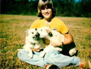 Although, she once was a girl. This is her at age twelve, allowing our neighbor’s dog, Chips, attempt to devour our dog Foxy’s head.